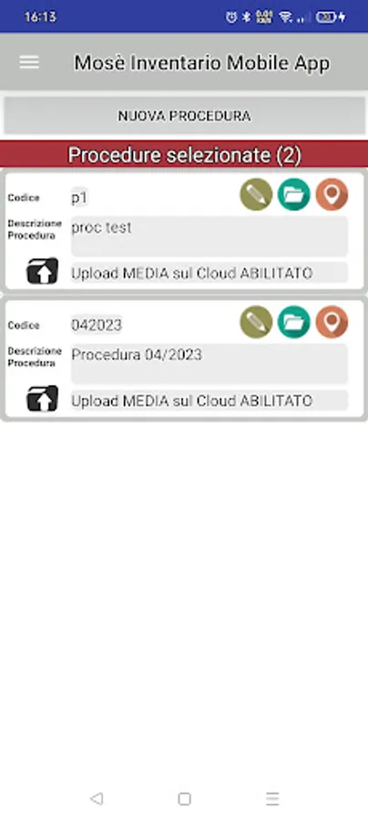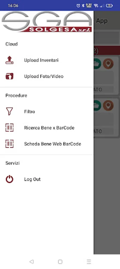 After logging and validation of the IVG on the cloud (using unique credentials for each user) The App lets you make for each procedure the inventory of assets with attached video-photographic documentation and subsequent upload to the enterprise cloud and subsequent update database back office.