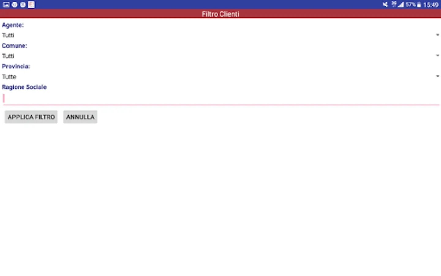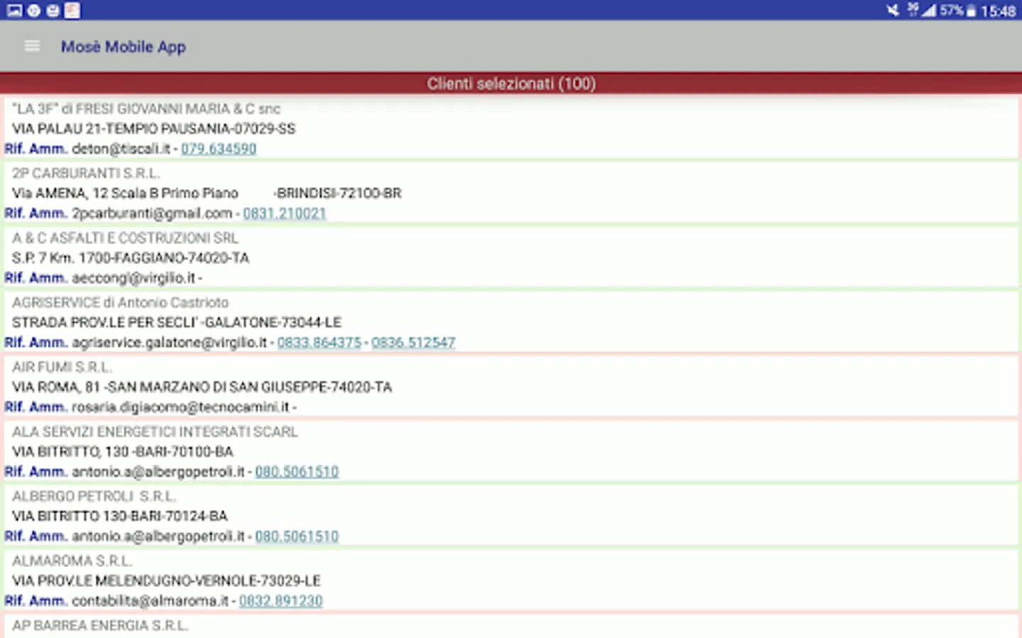 When the App starts, once the data has been downloaded from the cloud, the list is displayed, with the complete registry of telephone numbers for calls in real time, of all customers in the case of administrator user or only of customers assigned in the case of agents.