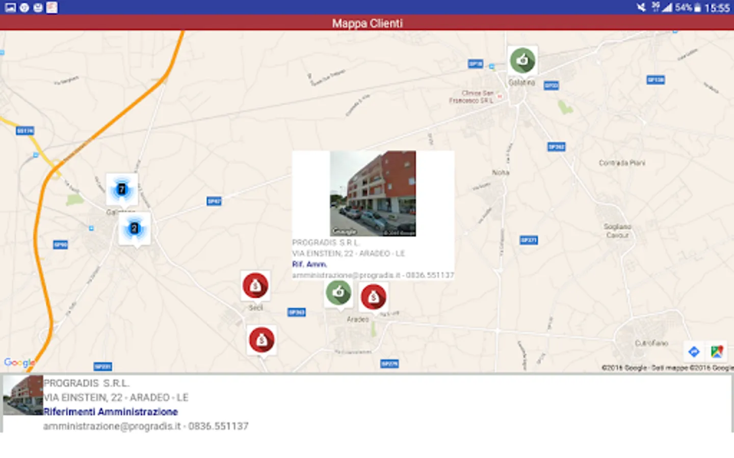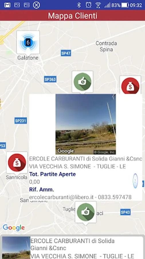 Application for the geolocation of customers with relative account statement for open items and invoice receipts.