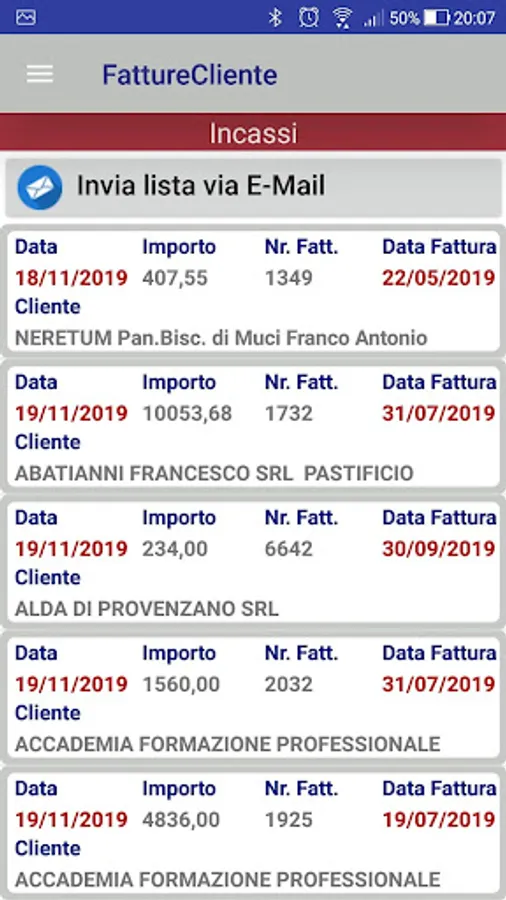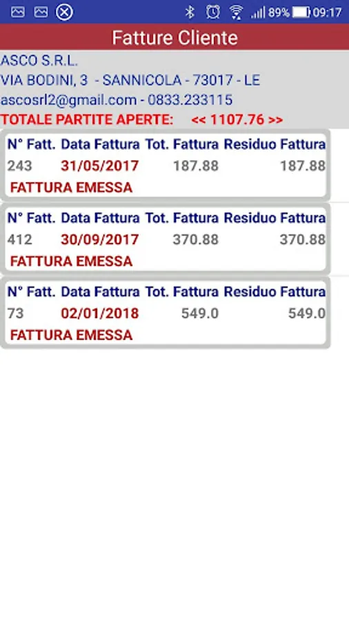 Through the appropriate Mosè back office procedures, customer records and account statements related to open items are synchronized on the company cloud, allowing App users, whether they are administrative officials or agents, to check in time the accounting situation of its customer base is real and any receipts must be calculated.