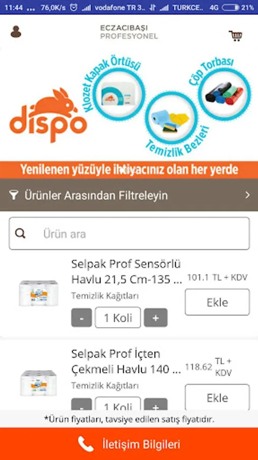 EP mobile application; Eczacibasi will access the details of professional products, the estimated time to see the prices and can be ordered through your sales representative to contact you within easy reach of your order.