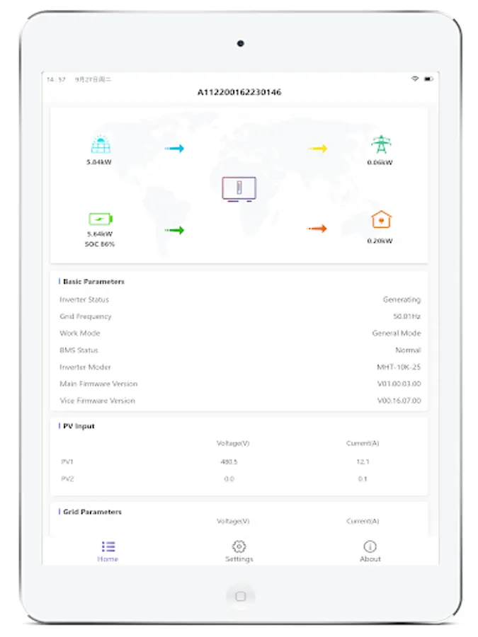 SolintegSet APP is a mobile application that communicates with hybrid inverters over WIFI and allows you to monitor real-time status and configure parameters.