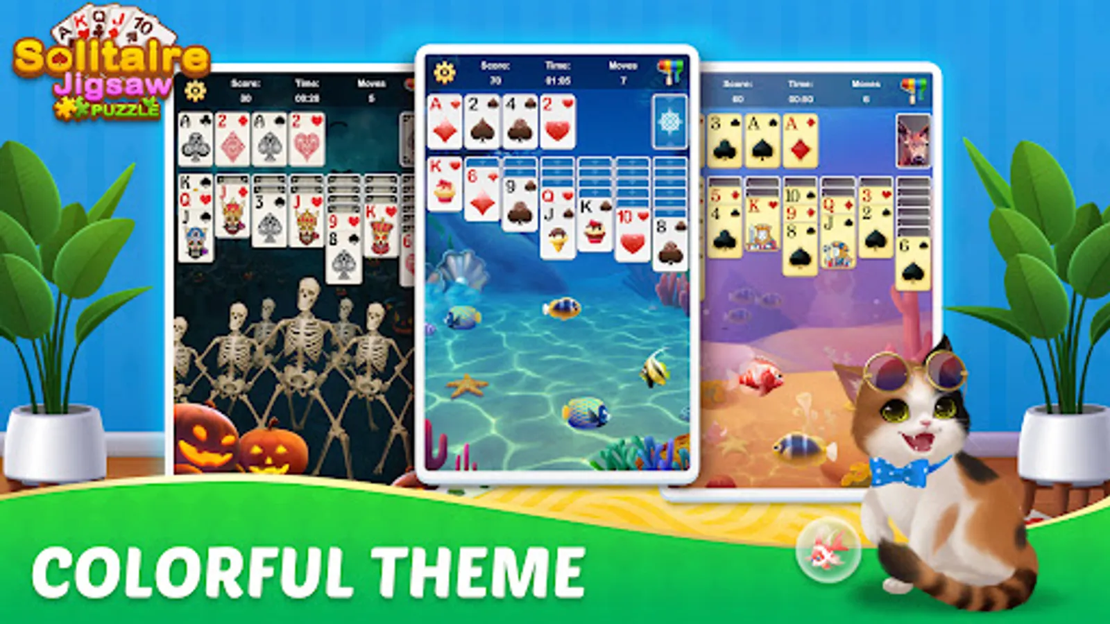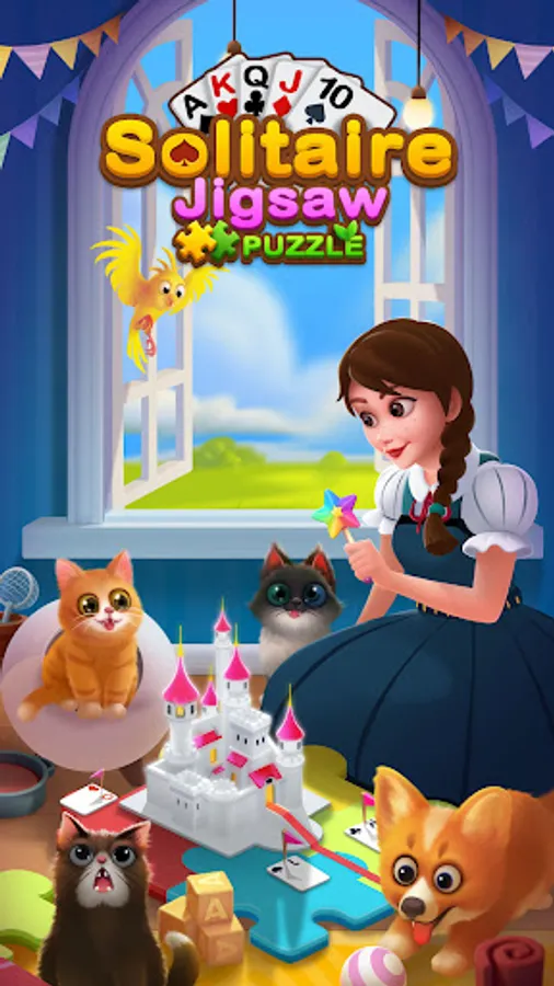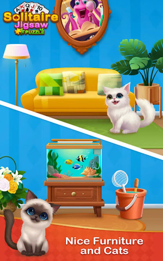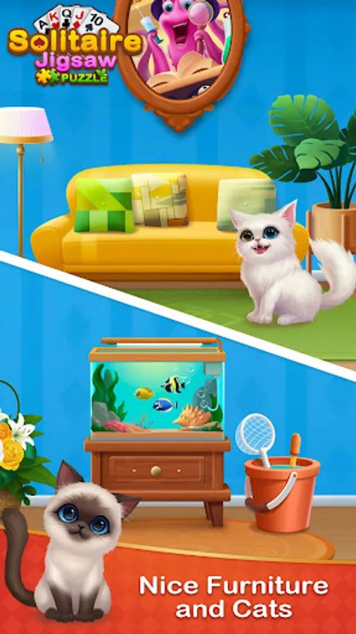 Solitaire Jigsaw Puzzle is a magical Klondike Solitaire card game, you can play classic solitaire card games to gather jigsaw puzzle pieces, and then use these jigsaw pieces to design your own art gallery! Beautiful furniture, cute kittens, and flowers in your art gallery are waiting for you to unlock.