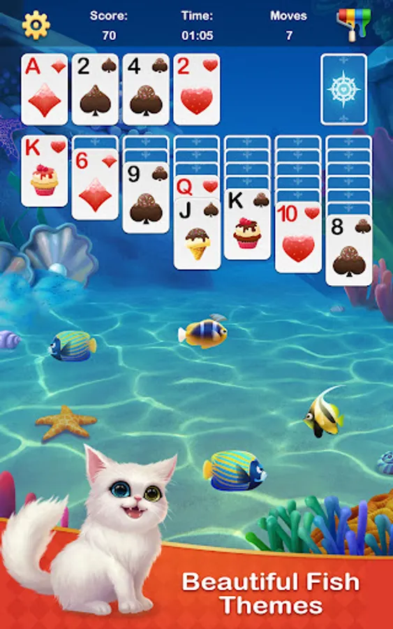 Hundreds of beautiful themes: Hundreds of backgrounds for you to play solitaire card games, like backgrounds of waterfall, horse, butterfly, ocean fish, aquarium, koi fish, kitten, moon, snow, and so on.