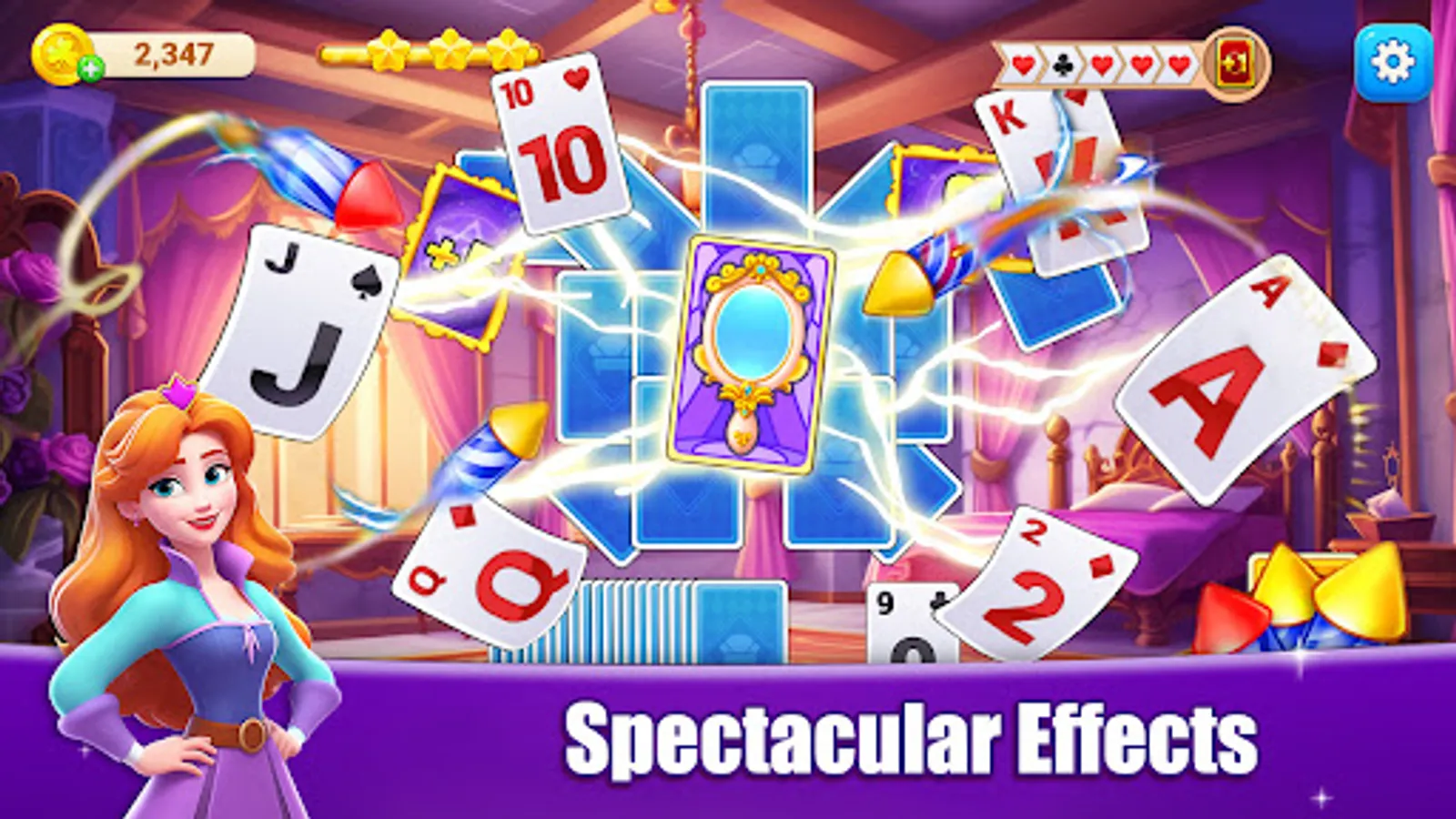 Solitaire TriPeaks Mermaid is a new type of poker cards matching game.The goal of the game is matching cards that with the same value to clear the game decks by removing all the cards from the pyramid tower. In Solitaire Match Mermaid, you can simply remove similar cards, Also you can make color matches, even suit matches to game a higher score. Solitaire Match will become one of the most popular board game. Simple rules and addictive gameplay is a great way to spend your free time. Enjoy it!