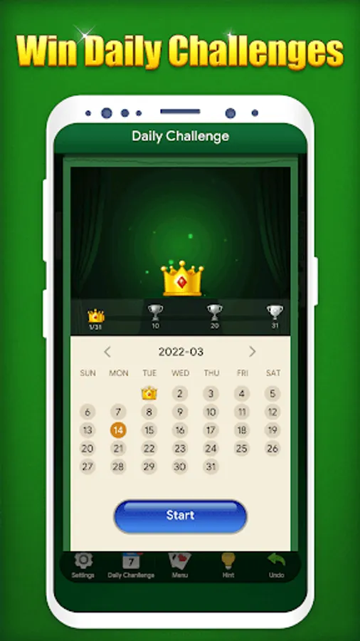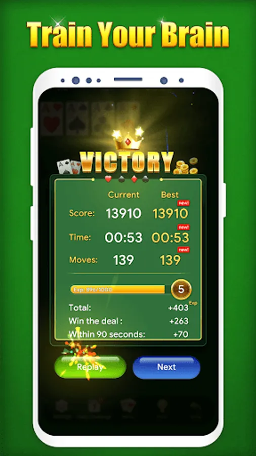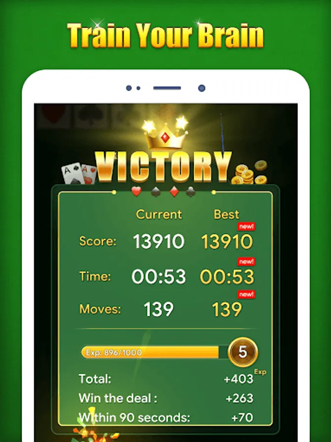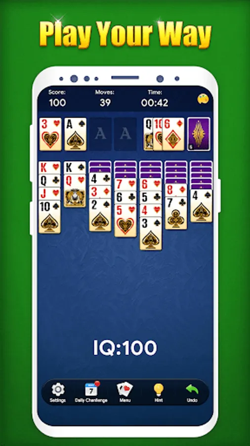 ♣ Daily challenge makes it possible to train your brain everyday with classic Solitaire game!
