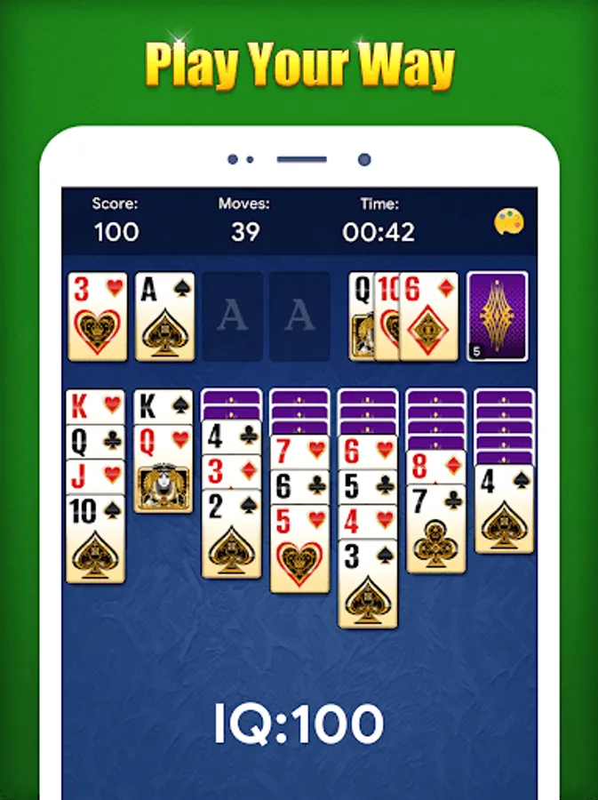 ♠ Crisp and easy to read cards, and you will feel much comfortable when playing our classic Solitaire game!