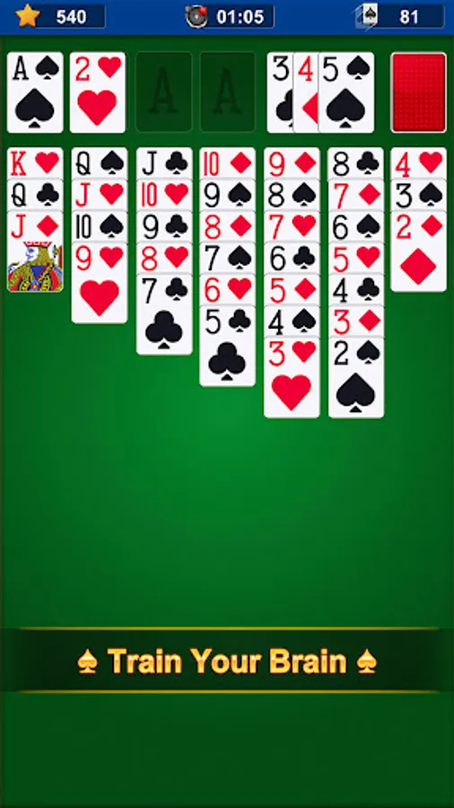 New style free card game Solitaire. It also known as Classic Solitaire or Patience card game.