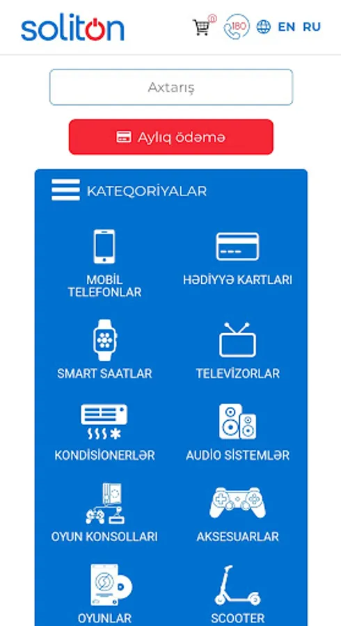 The product range of Soliton stores includes small and large household appliances, computer equipment and software, televisions, home theaters, photo and video equipment, telephones, CD, DVD and MP3 players, accessories, office equipment, etc. including products such as