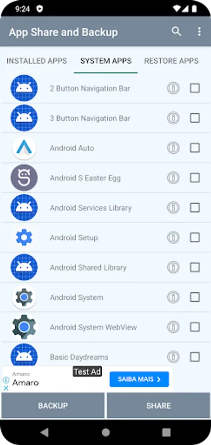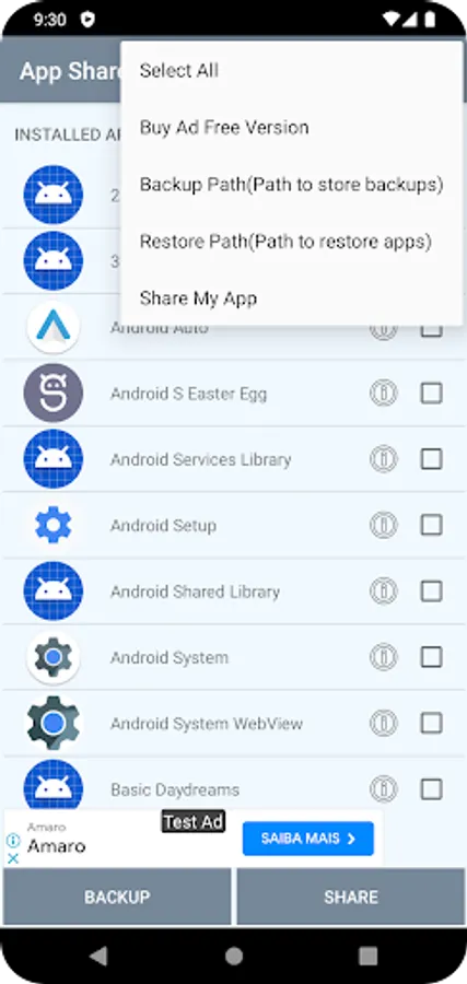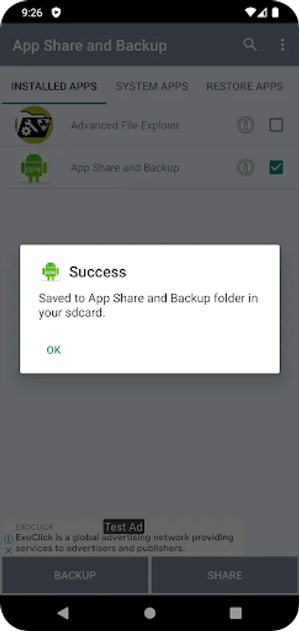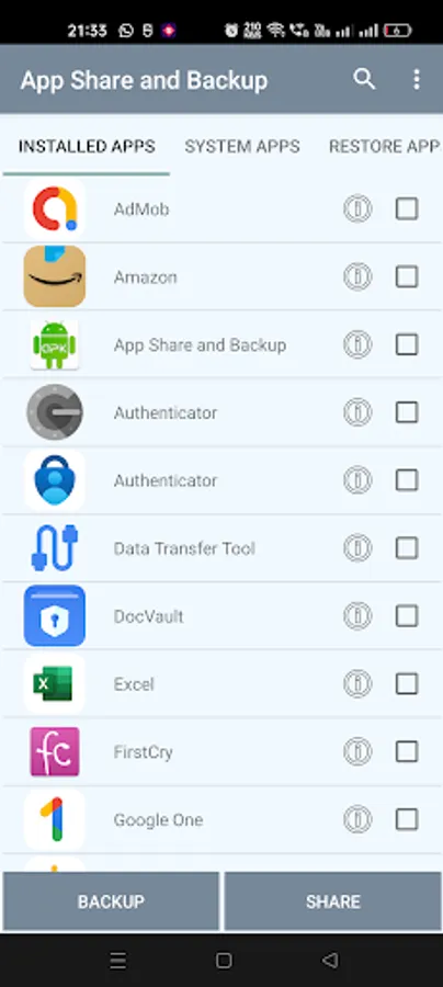 App Share and Backup allows user to extract apk , take backup of selected or all the apps and allows user to share the apps. It also allows to restore (install) apk files from specified folder.