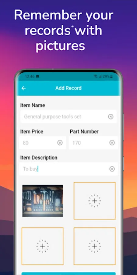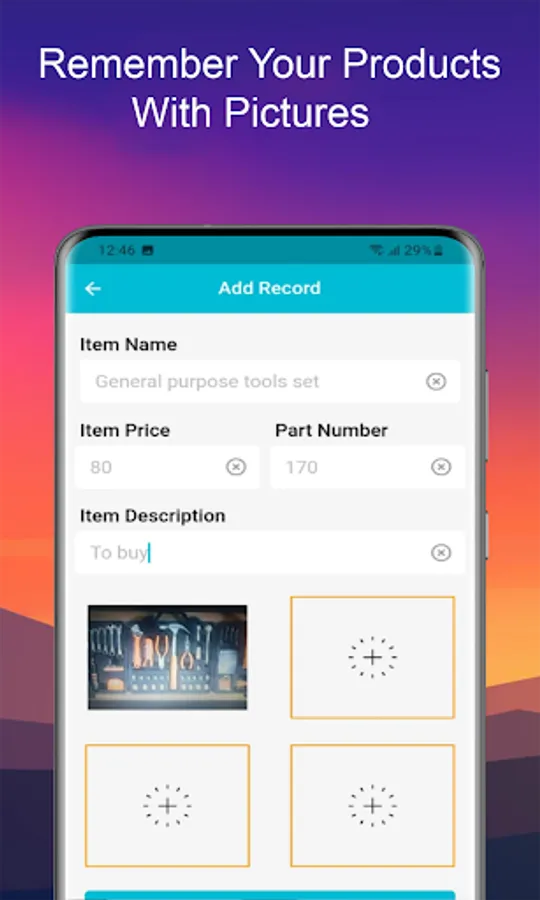 Some time especially when you want to capture your desire products from market, you need to keep its name, price and other details with you, this app has design to meet your requirements, globally all market products are assigned with it is part no or bar code, so you need to keep the product with its part no, later you can search the item whit its part no in your record gallery, this app allow you to share your data via WhatsApp as well.