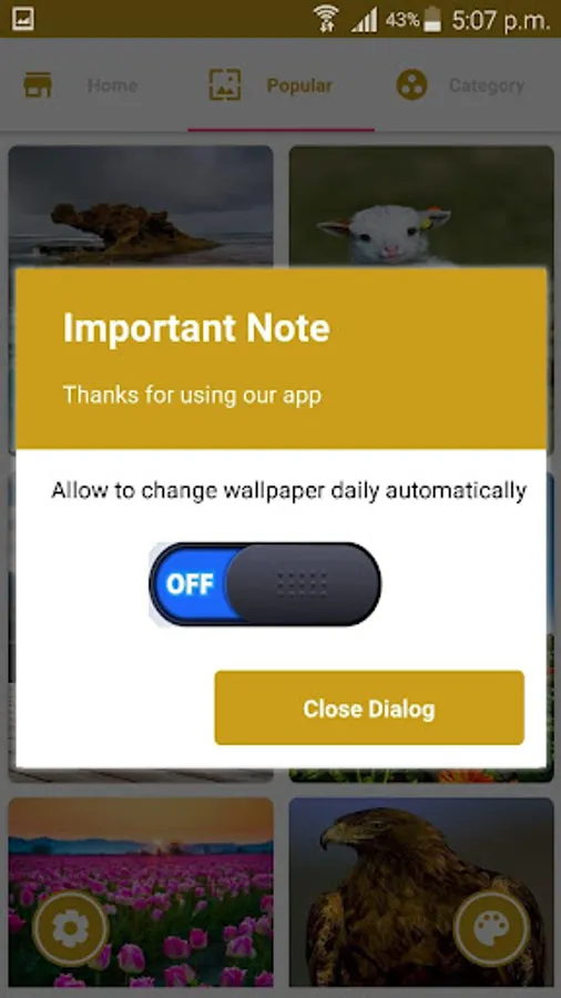 * Users can allow and disallow to change wallpaper from setting toggle button