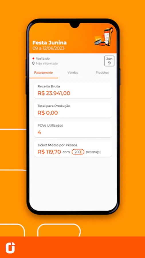 Track the sales performance of your events registered on SpotPass in real time. Receiving information on Gross Revenue, Number of POS used, Average Ticket per person, in addition to tracking sales by payment method and a breakdown of the products sold.