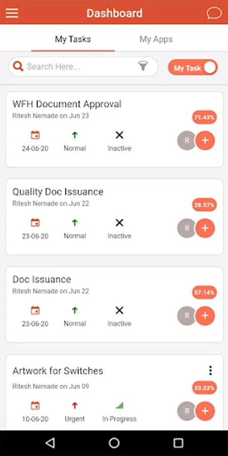 A view that enables you to finish all your todos quickly. All the requests from the different processes in one view. Internal chat system for Individual and Group discussions.