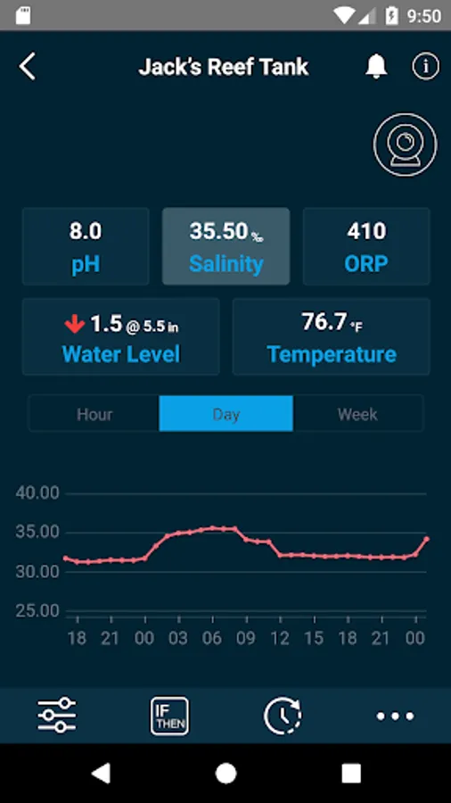 • Monitor tank water parameters in real time (temperature, pH, ORP, Salinity, etc.)