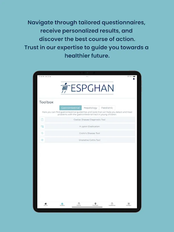 Moreover, ESPGHAN includes specialized tools such as the Coeliac Disease Diagnostic Tool, H. pylori Eradication Tool, Chron's Disease Tool, Ulcerative Colitis Tool, Wilson's Disease Diagnostic Tool, and the Paediatric Parental Nutrition Tool. These tools provide doctors with specific assessments, guidelines, and recommendations tailored to each condition, streamlining the diagnostic and management process.