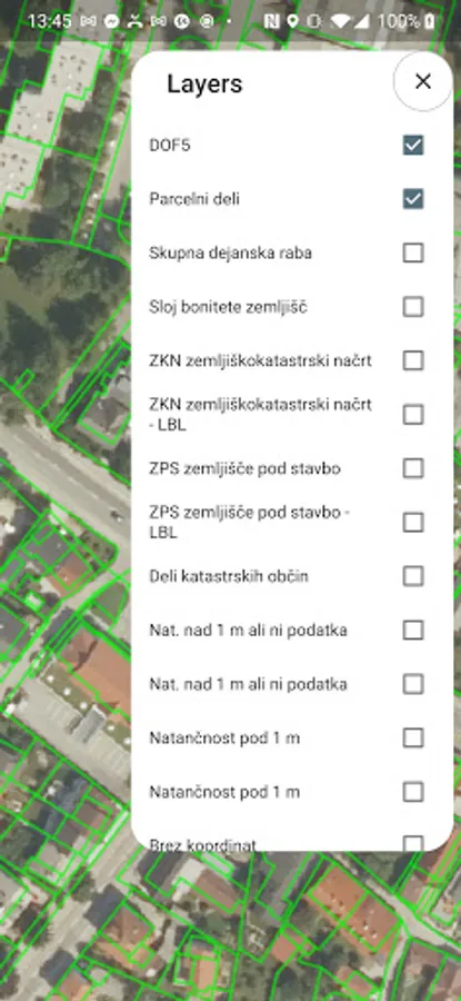 Graphic data are available in the mobile application, which is available on the portal https://eprostor.gov.si/javni/. The application is intended for reviewing data in the field. The map is always centered on the current location.