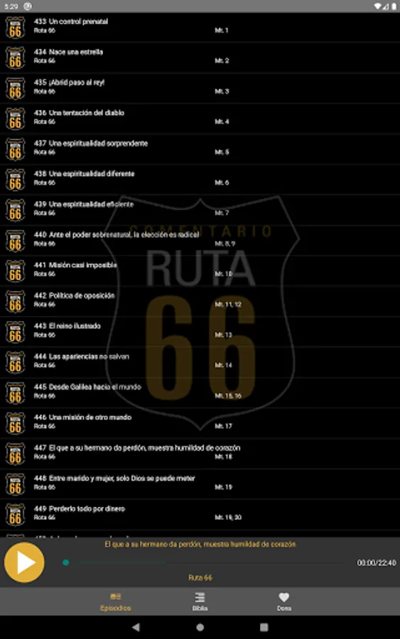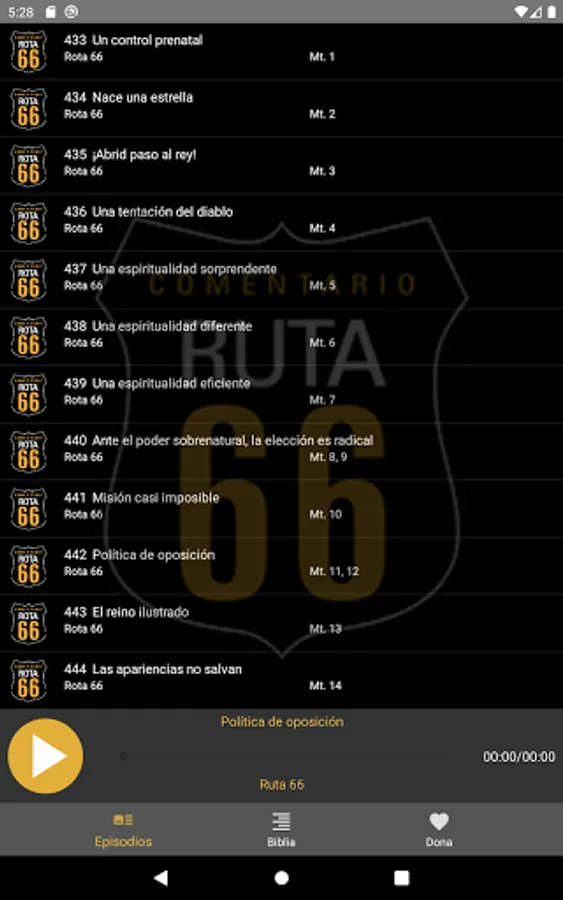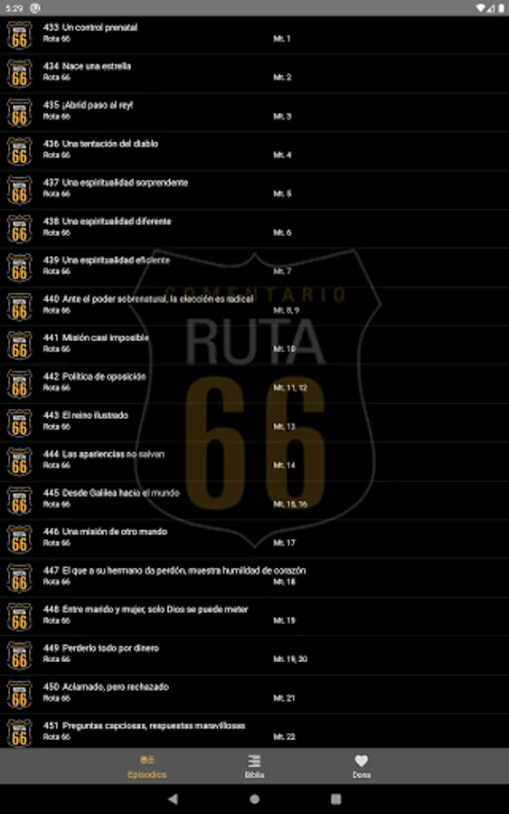 RTM Route 66 is a program in which we travel through the 66 books of the Bible in an exciting radio trip. The biblical exposition joins a question and answer time in which we address some of the most recurrent and complicated doubts about the Bible.