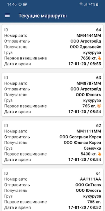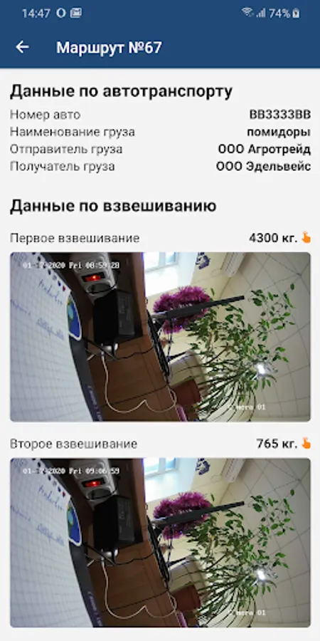 - the ability for the client to view the photo of weighing; fixing routes in the system