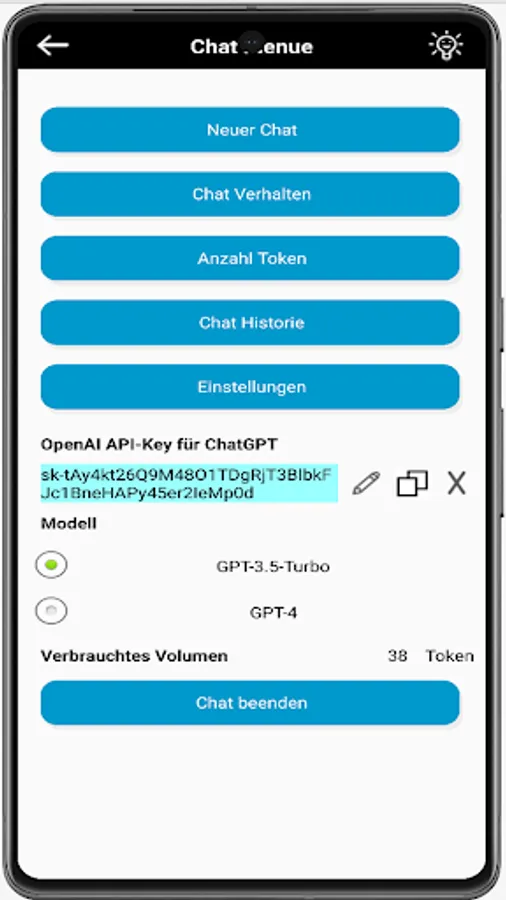 In addition to speech recognition and translation in over 120 languages, communication with ChatGPT is now supported by OpenAI. All that is required for this is an API key, which is available from OpenAI. Choose the behavior of the AI from 10 predefined roles, such as assistant, entertainer, researcher, etc. The size of the history and the number of tokens can be freely selected.