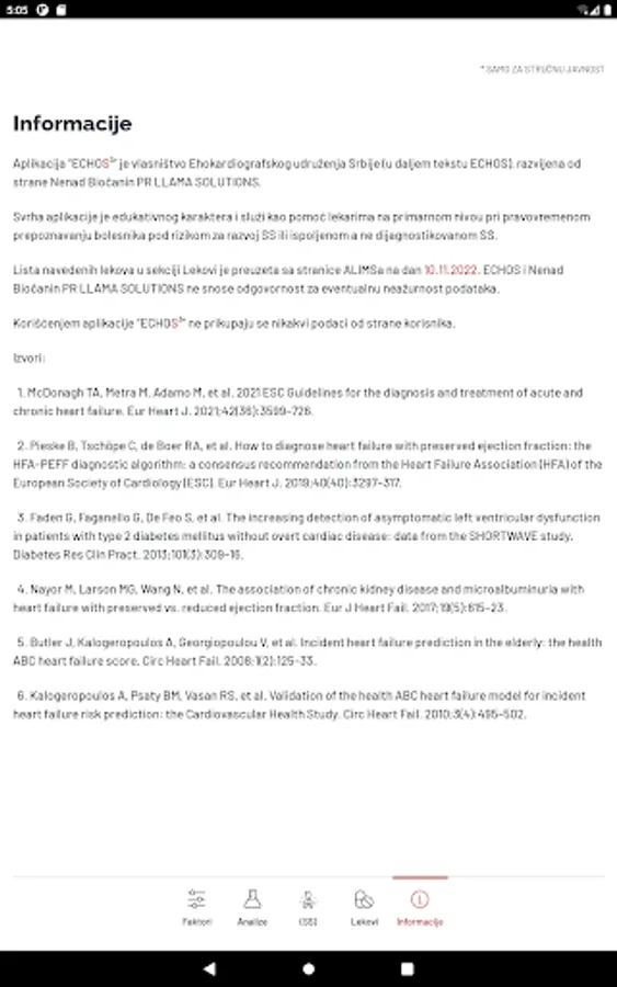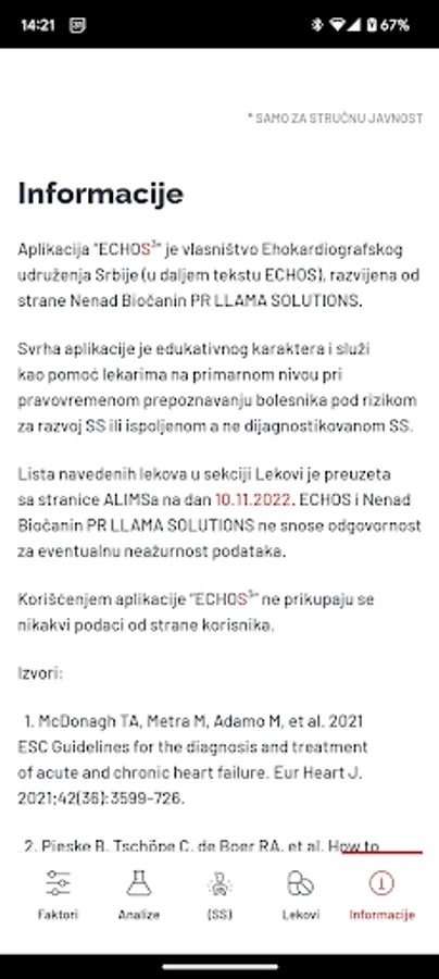 The purpose of the "ECHOS³" application is educational in nature and serves to help doctors at the primary level in the timely recognition of patients at risk of developing SS or manifest but undiagnosed SS.