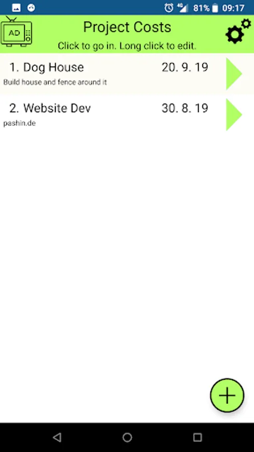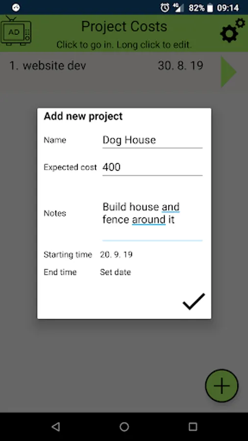 Project Costs allows you to create unlimited new projects. Project could be anything you are working on at work, in free time or for part time job!