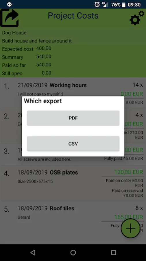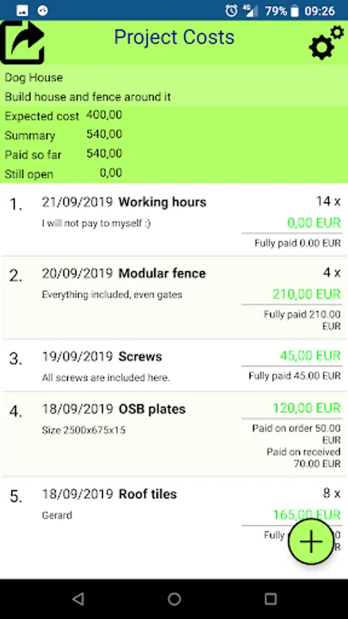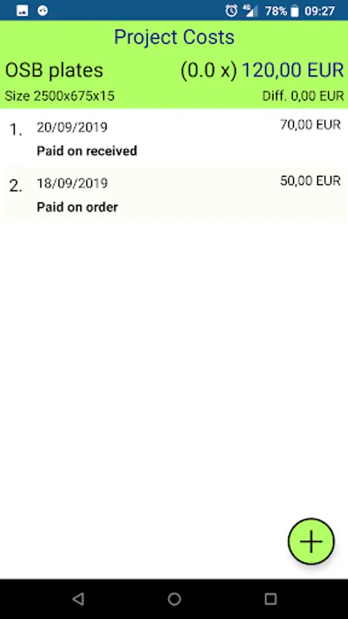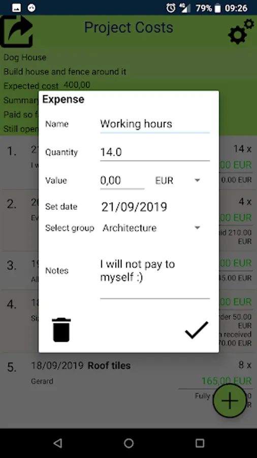 With mobile app Project Costs you can also manually add payments. This is useful when you have contractor that do part of your job and you pay some in front and some when they are finished with their job. That way you can see how much and when it was paid.