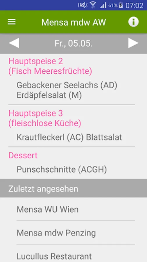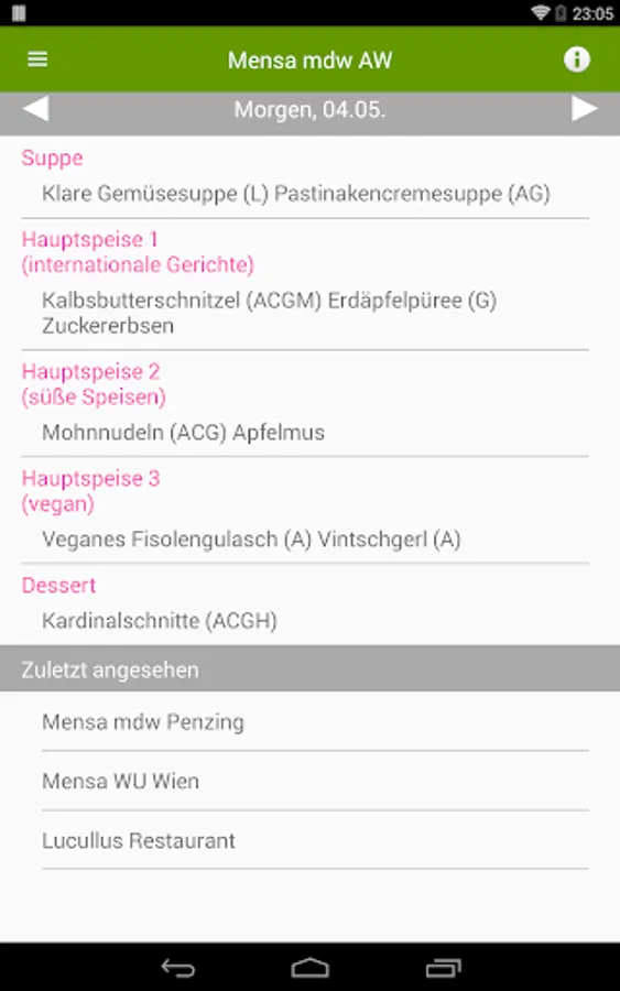 Info menu plan allows you to easily access the menu plans below pubs and cafeterias.