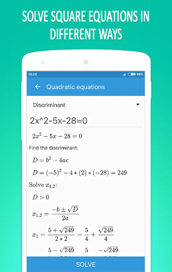 🙾 Equation solver with steps Are you in search of an equation calculator for free in order to solve math equations step-by-step? You came to the right place! This best of all math apps free adores challenges and is always ready to accept them. Once you try to use this math helper in your everyday life, equations will seem too easy for you to worry about! Choose the simplest and the smartest math solver ever for android tablets and smartphones.