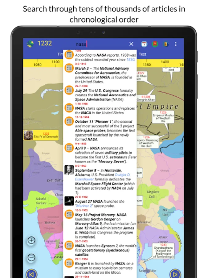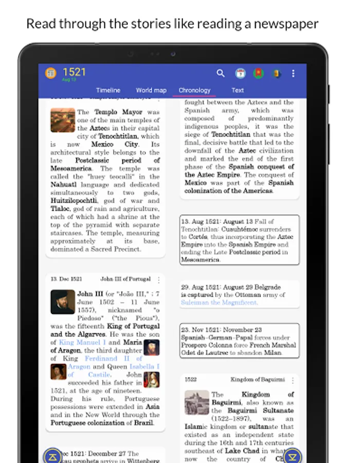 Chronological and geographical presentation of historical topics and events. Travel through the fascinating history of mankind from the earliest civilizations to the present.