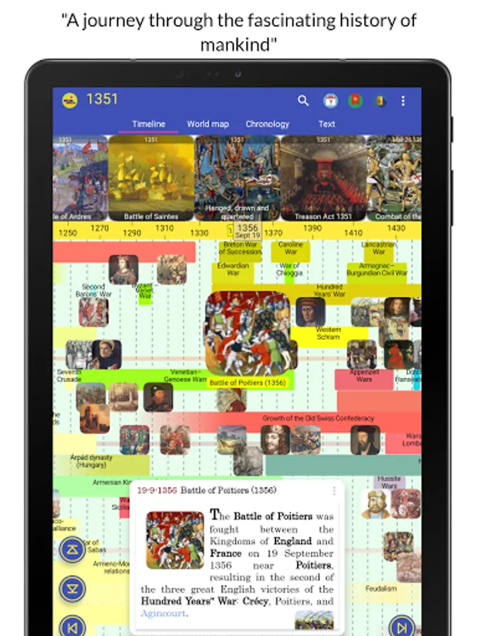 Chronological presentation of historical topics and events. Travel through the fascinating history of mankind from the earliest civilizations to the present.