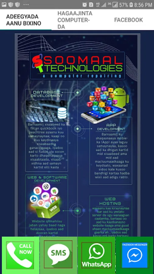 Soomaal Technology waa xafiis u taagan sameynta barnaamijyada kombuyuutarka, sida: