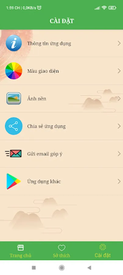 + Settings: Allows you to change the interface color, view application information, send email suggestions, ...