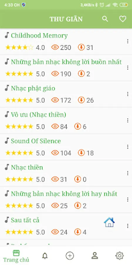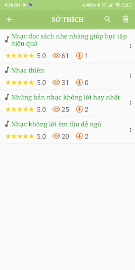 + Account section: Includes the functions of login, account registration, view music that you have uploaded,...