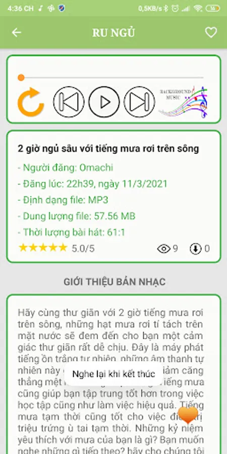 - Application used to listen to music online, offline with music store according to the needs of the body and mind.