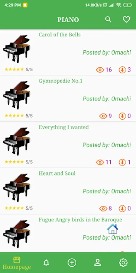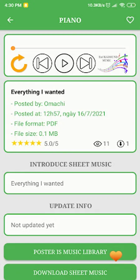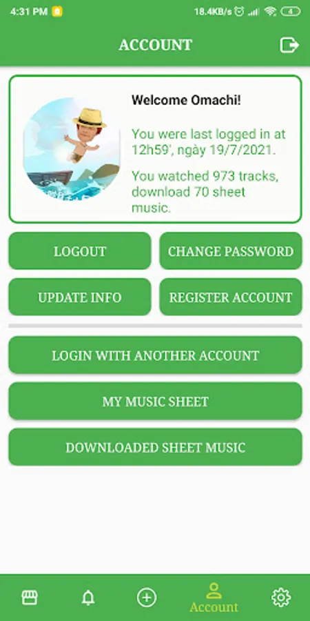 + Account section: Including the functions of logging in, registering for an account, viewing the sheet music you have uploaded,...