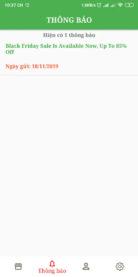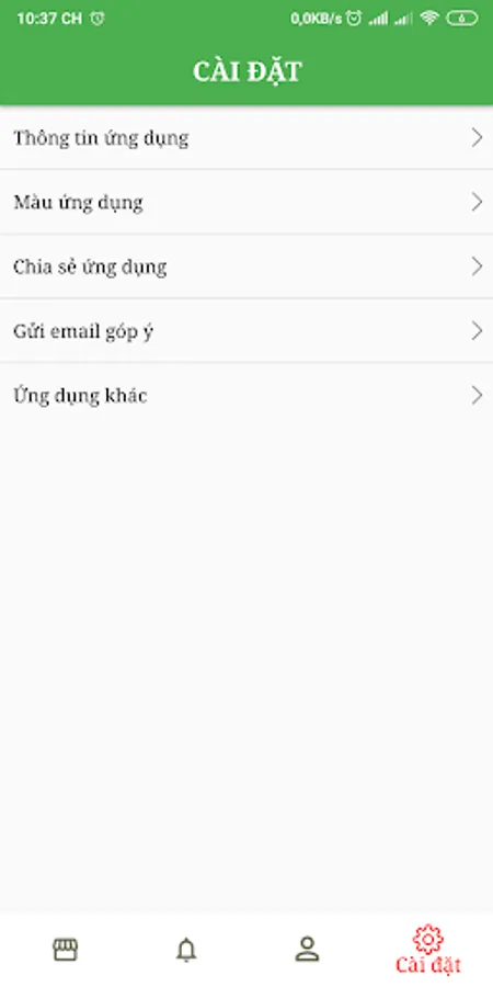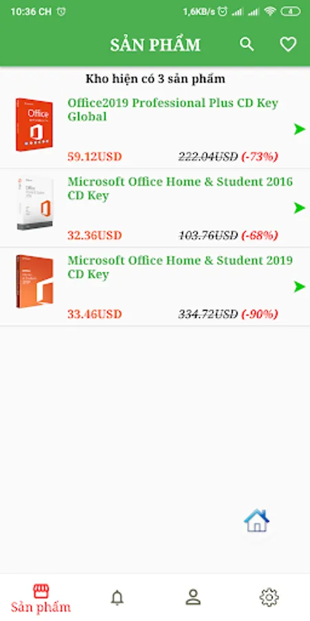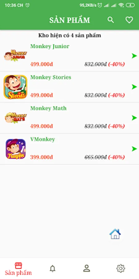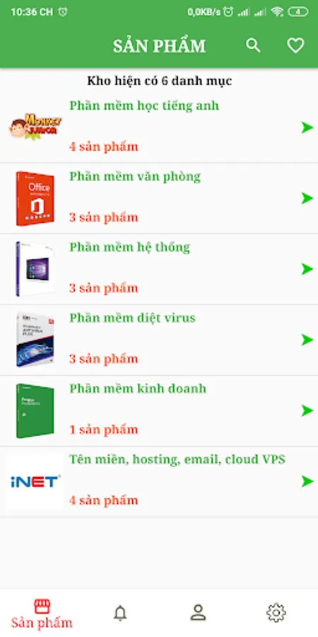 The application includes 4 main sections: Products, notifications, accounts and settings.