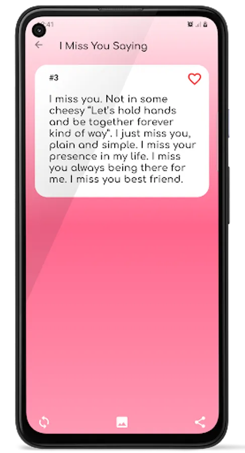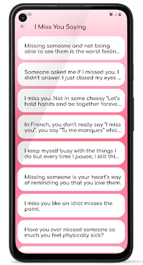 I Miss You Quotes App contains a collection collection of 1000+ best i miss you quotes, Love quotes to express how much you miss that special someone. Let these quotes help you to express what you are feeling about other persons.