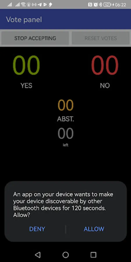 Before starting the vote, the display device must "stop accepting" (use button). At that time, all voters must be connected.