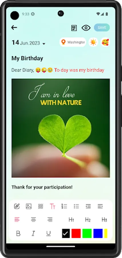 In addition to password protection, "Cool Diary with Lock" also provides a range of customization options, allowing you to personalize your diary to suit your taste. You can choose from a range of background themes, fonts, and colors to make your diary unique and visually appealing. You can also insert photos and images into your diary entries, making them even more memorable.