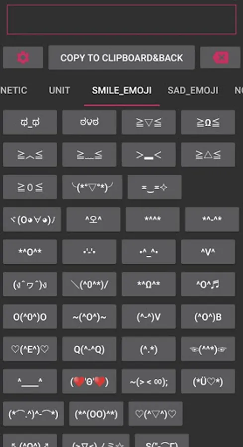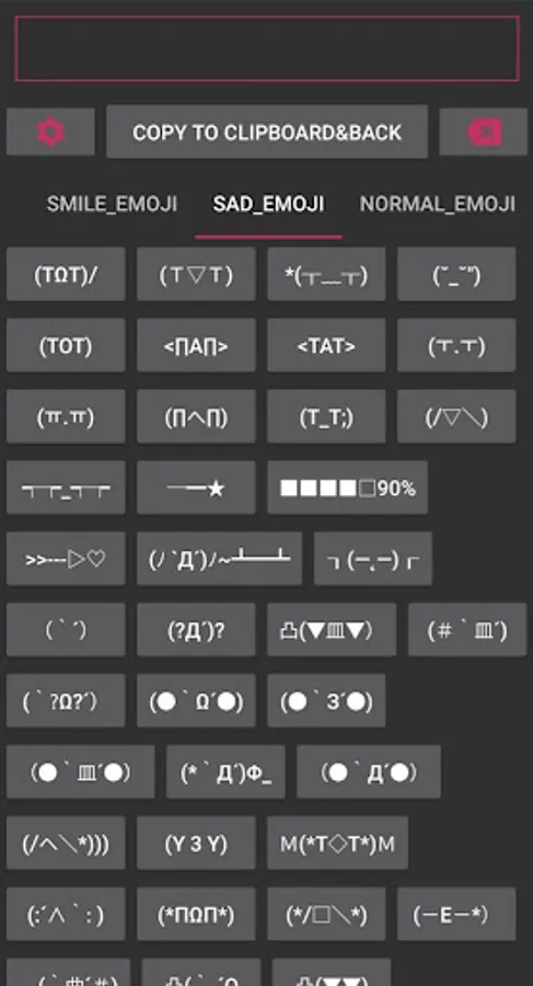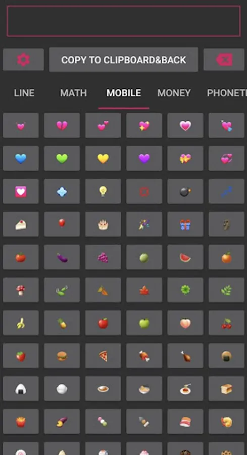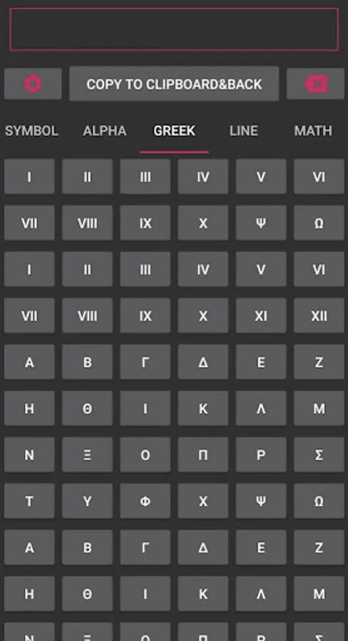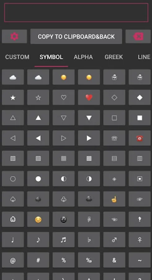 Tip - If you want to type just one symbol, you don't have to press "Copy to Clipboard" button. because it is already copy to clipboard. you just long press on textfield where you want type symbol