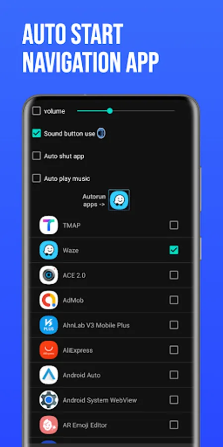 With this app(like waze) , your smart device will automatically start your GPS navigator application when your device is bluetoothed to your car.