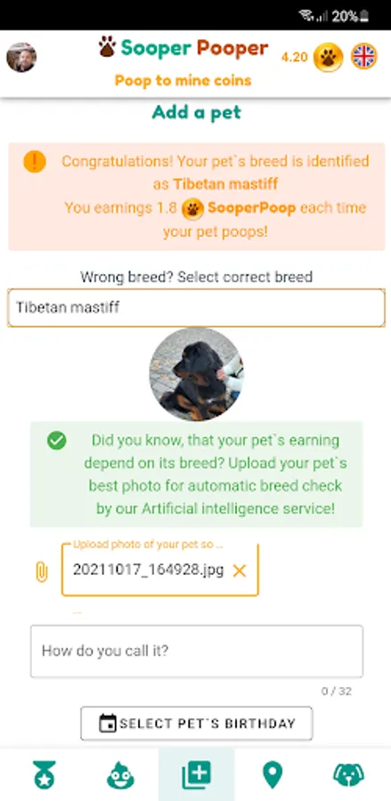 We care about animals. Every pet should get good food. So good poop is a proof, that you feed your pet properly. Sooper Pooper app rewards pet owners for providing proof-of-poop of their pet. Every time your pet poops, you are rewarded with in-app coins. Don`t have a sooper pooper? Don`t worry, we will get you one from a local shelter!