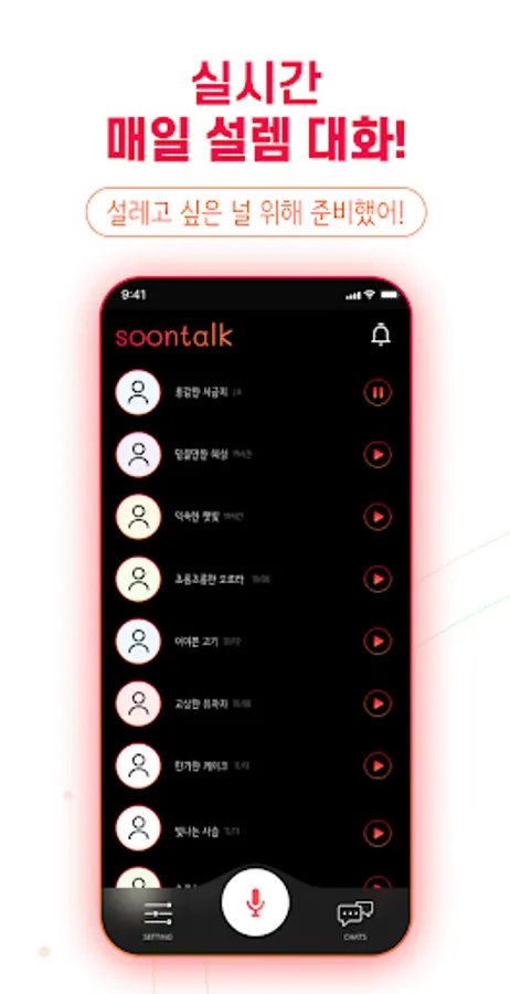 Listen to the voices coming up in real time from soontalk and reply with excitement. Time flies without even realizing it!
