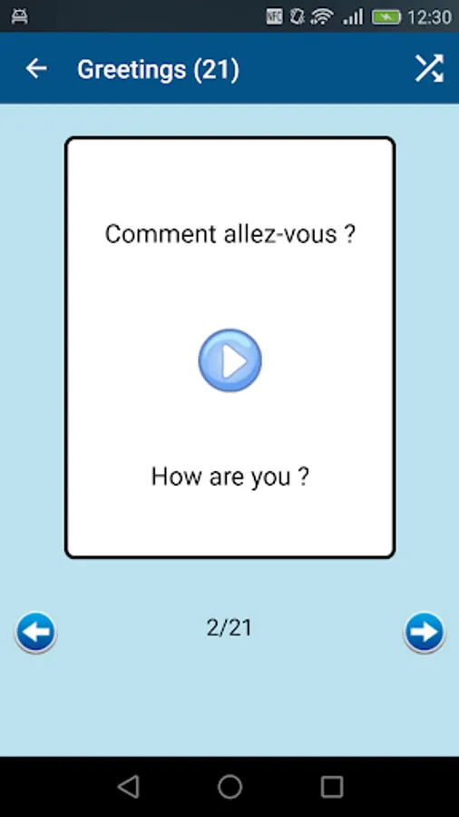 You can consult the sentences by list, or even with an easy to use flash card system which is perfect to remember the sentences !