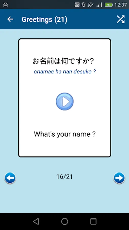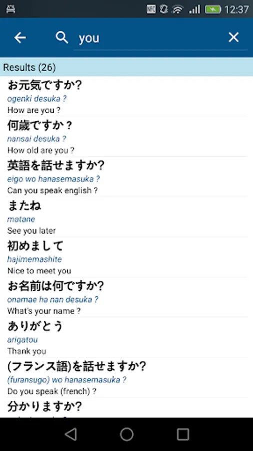 You can consult the sentences by list, or even with an easy to use flash card system which is perfect to remember the sentences !