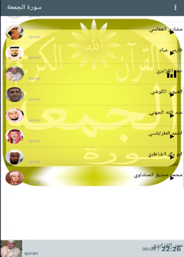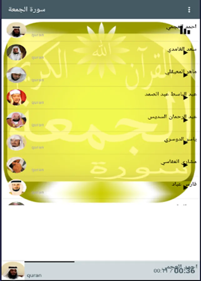 En Surat Al-Jumu'ah encontrarás muchos recitadores famosos con sus voces distintivas