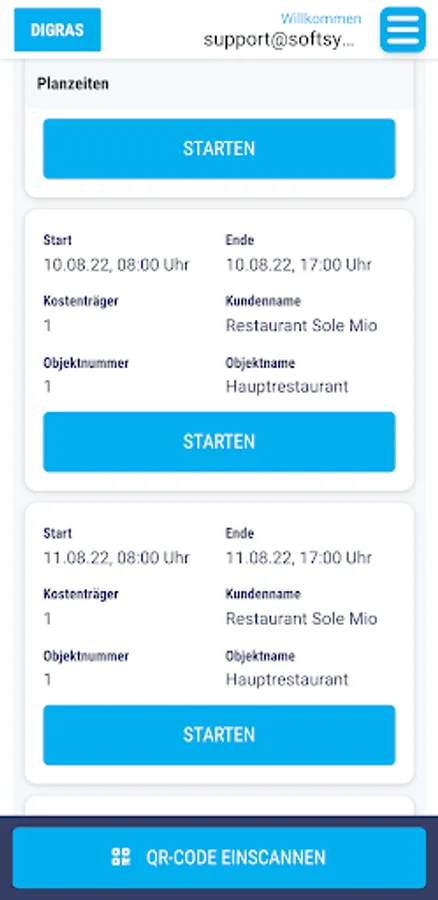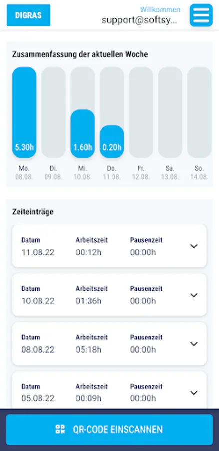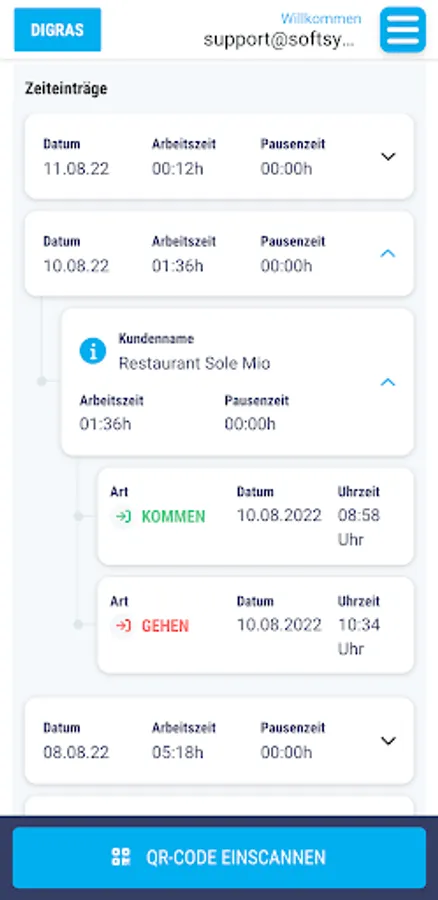 Recording of working and break times for DIGRAS Software customers. Individual billing software for building cleaners. If you have any questions or are interested, go to www.digras.de.