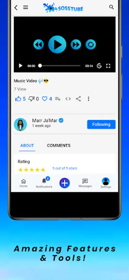 Members can create Profiles, Channels, Upload MP4 Videos, Reels / Short Videos, Stories, MP3 Audio, Blogs, Images, Series, Movies, Chat with other SossTube members, Import YouTube URL Link videos, Go Live, Broadcast and more.