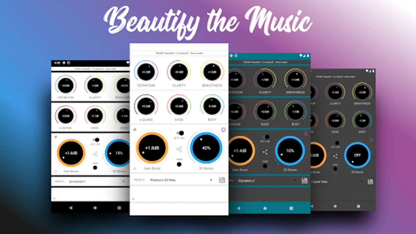 Enhance the beauty and the energy of the music with the app's audio exciter abilities.